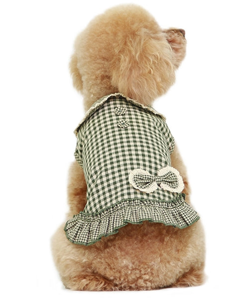 Dobaz 'Gingham Dress' for Dogs & Cats, Cute and Fashionable Dog Dress for Spring and Summer, Comfortable Pet Apparel, Green